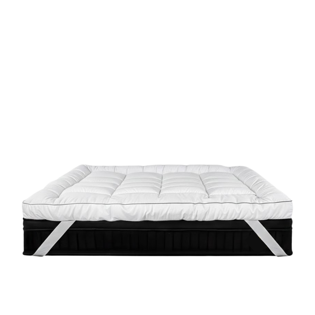 • نظام التثبيت: مزود بمغاط قوي في الزوايا الأربعة يحيط بالمرتبة ليضمن ثبات اللباد وعدم تحركه أثناء النوم.