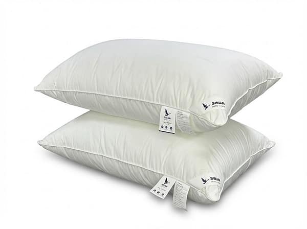 حشوة ريش البجع الفاخر: محشوة بأجود أنواع ريش البجع الطبيعي 100%، مما يمنحك إحساساً استثنائياً بالخفة والنعومة الفائقة، وكأنك تنام فوق سحابة من الراحة.